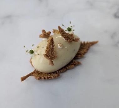 Comté Cheese Crémeux, Truffle Pearls and Cauliflower Salsa Quenelle