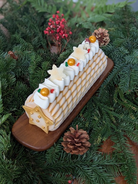 Ice cream buche – Our famous Mystery Bûche Vanilla parfait ice cream, heart of meringue and crispy praline (size for 6 pax)