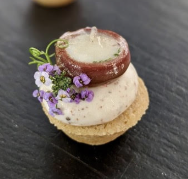 Rosemary and thyme financier, Lobster, Sichuan pepper cremeux and Rosemary apricot gel quantity